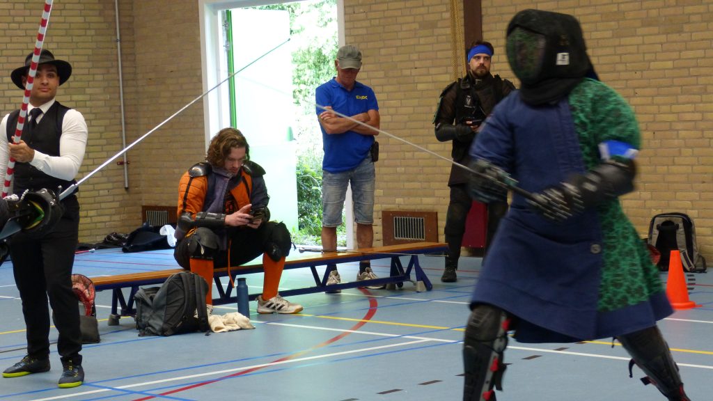 4 poules of 8 (32 open longsword)1 poule of 8 (8 Ladies longsword) Ladies longsword is cancelled.